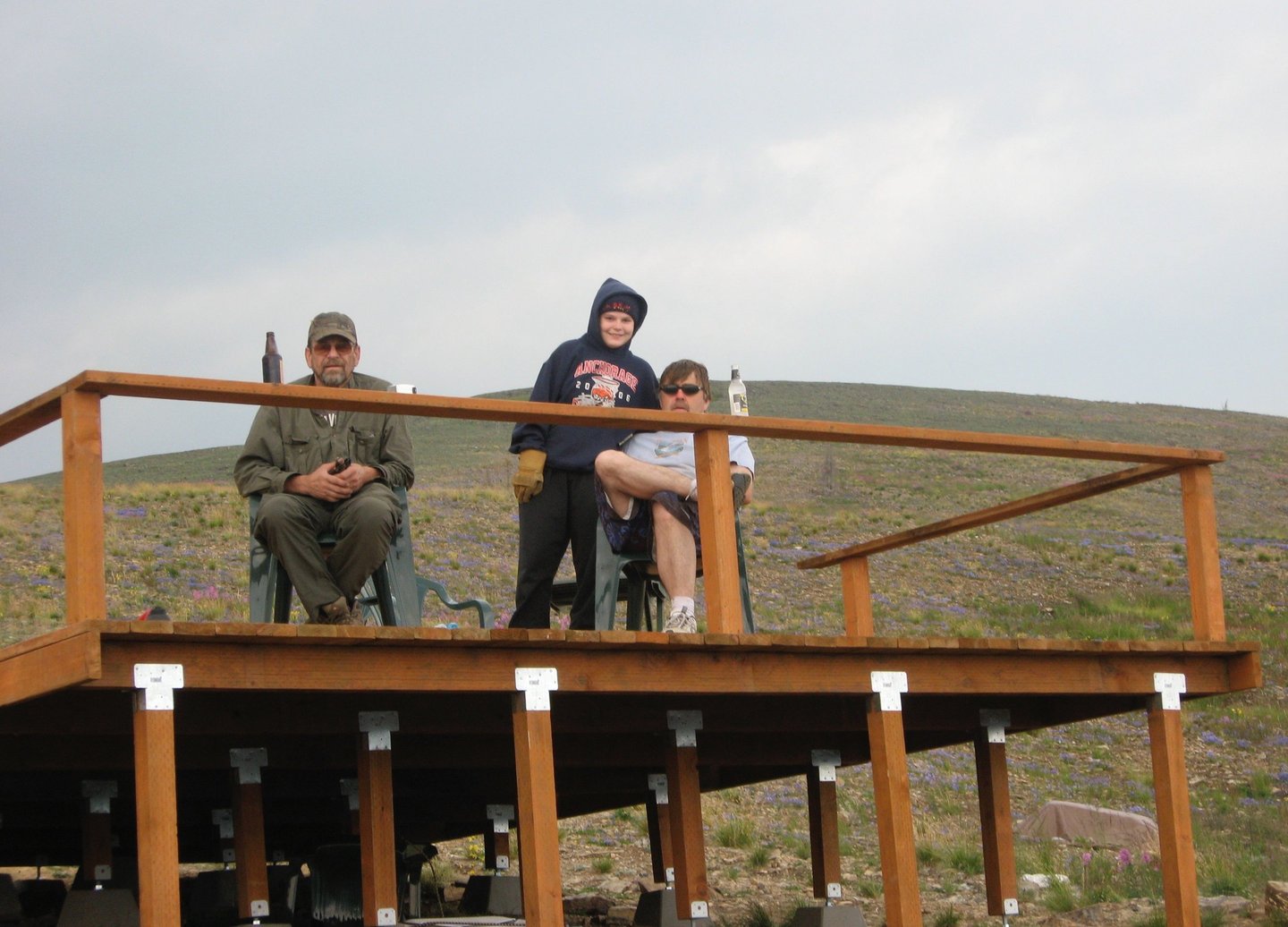 OP success. The railing should keep folks from a taking a header off the front. We would later pull 16' of the decking and and lay the cabin panels directly on the joists underneath. But, until then it was nice just to have a platform. And flat ground.