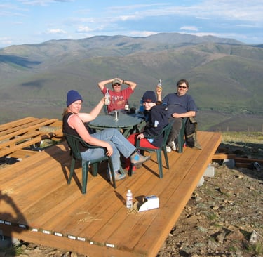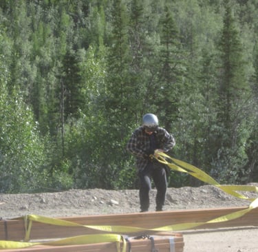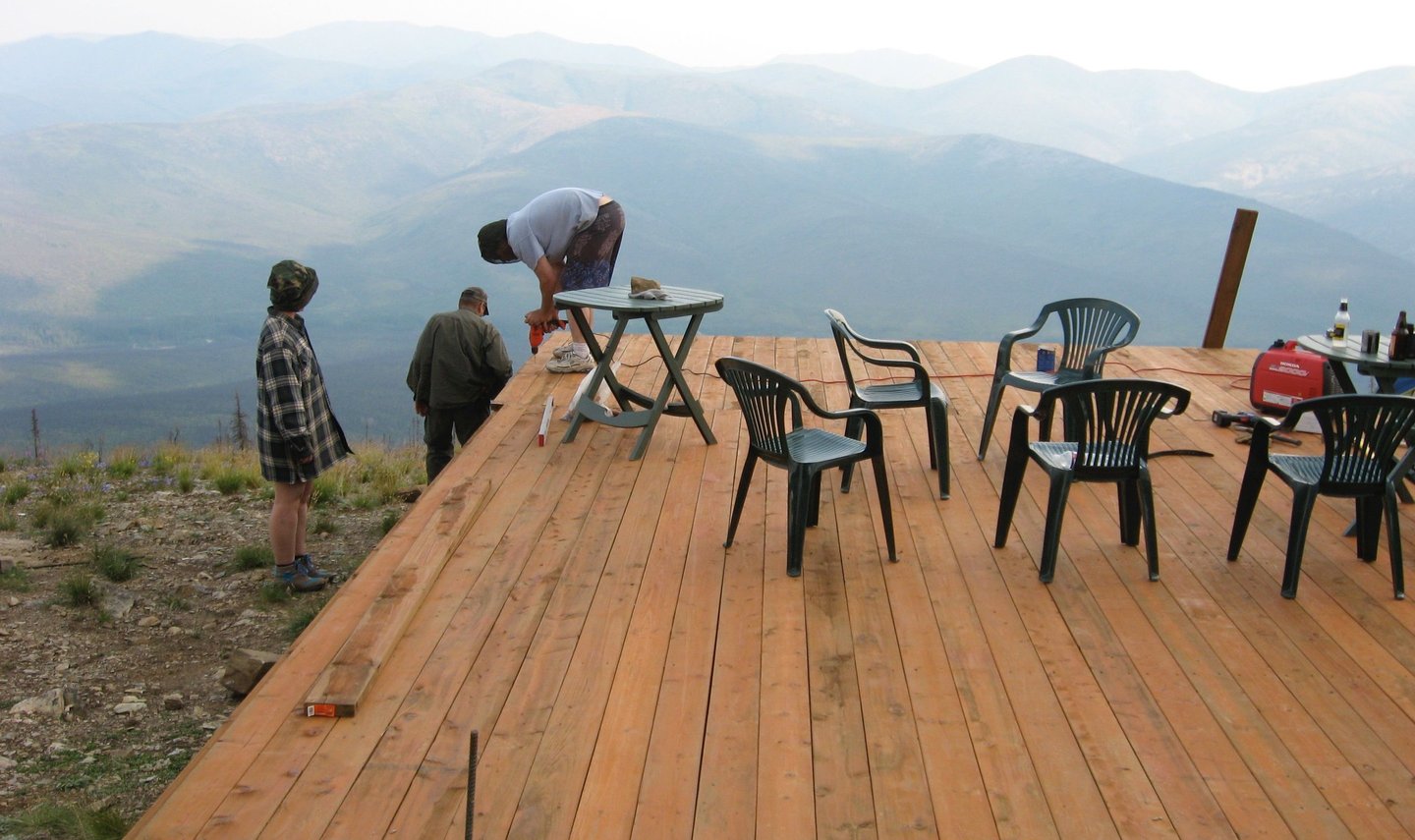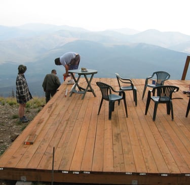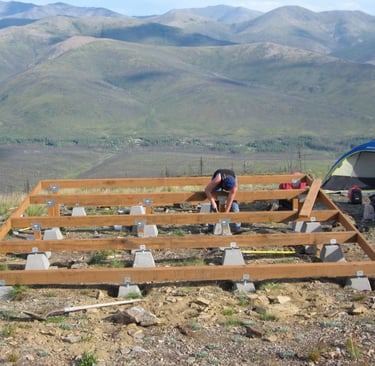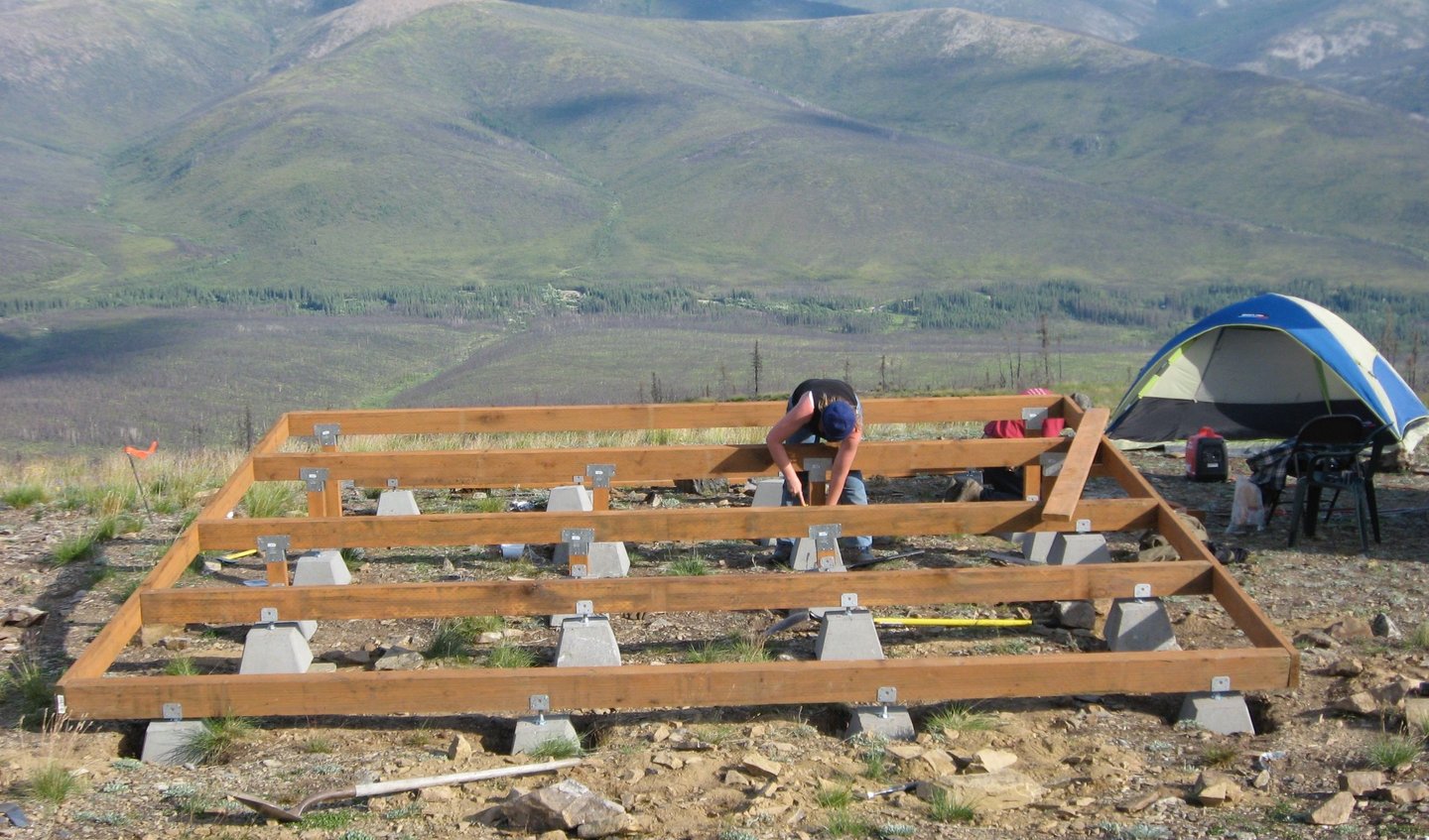 When you glance at the Upper20 from say, the top of Shifty's Hill, you might assume that large portions of the property are flat. That would be a mistake. The Upper20 is a set of terraces alternating with slope in between, but mostly slope. Just ask those Caribou staring down at you. You're constantly blocking small tables to run a cookstove. If sleeping on the ground in a tent, you must orientate properly. We had started Jim's cabin in 2006, but we decided to build a flat platform that would eventually serve as the foundation for the main cabin in 2007. Enough was enough.